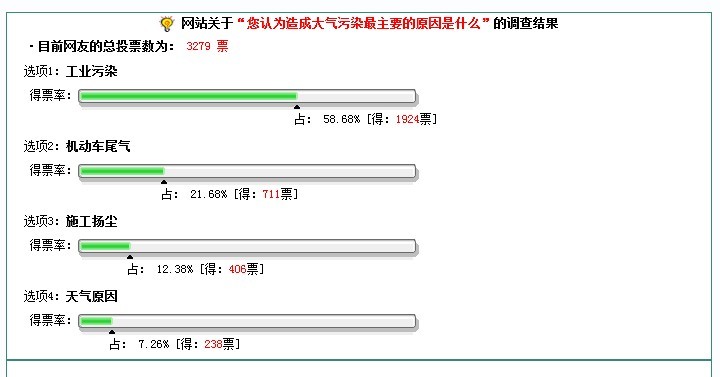 在這上個(gè)選項(xiàng)中,我公司本著想要看到真實(shí)、公正的調(diào)查結(jié)果,在進(jìn)行投票(工業(yè)污染)后才進(jìn)行結(jié)果查看,結(jié)果如圖: